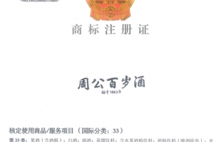 周公百歲酒商標為我公司在國家商標局33類合法商標